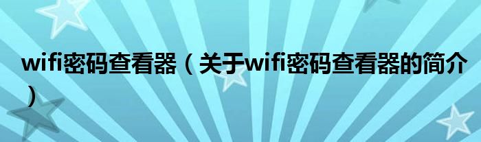 本文關于wifi密碼查看器的簡介就講解完畢,希望對大家有所幫助。