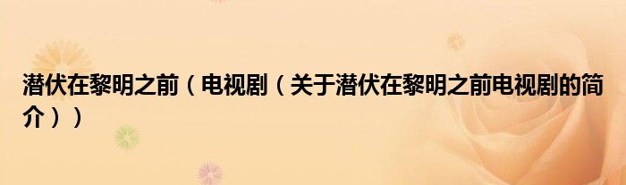 本文關于潛伏在黎明之前 電視劇的簡介就講解完畢,希望對大家有所幫助。