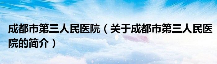 本文關于成都市第三人民醫院的簡介就講解完畢,希望對大家有所幫助。