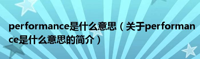 本文關于performance是什么意思的簡介就講解完畢,希望對大家有所幫助。