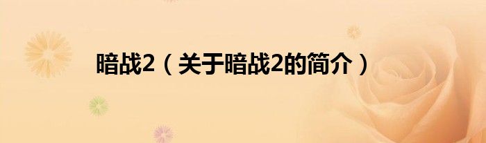 本文關于暗戰2的簡介就講解完畢,希望對大家有所幫助。