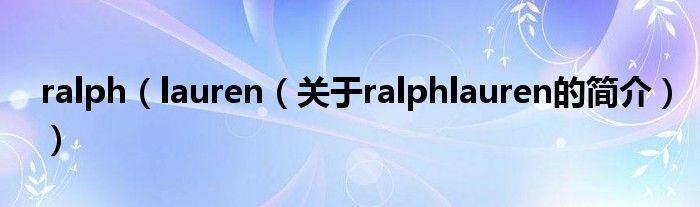 大家好,ralph lauren,關(guān)于ralph lauren的簡(jiǎn)介很多人還不知道,現(xiàn)在讓我們一起來(lái)看看吧!