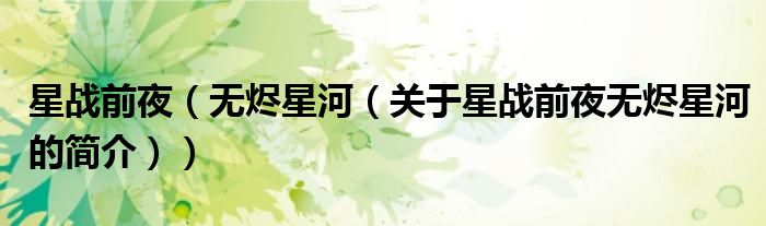 大家好,星戰(zhàn)前夜 無燼星河,關(guān)于星戰(zhàn)前夜 無燼星河的簡(jiǎn)介很多人還不知道,現(xiàn)在讓我們一起來看看吧!