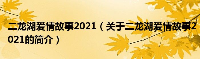 本文關于二龍湖愛情故事2021的簡介就講解完畢,希望對大家有所幫助。
