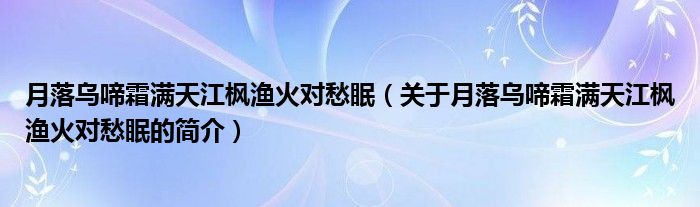 本文關(guān)于月落烏啼霜滿天江楓漁火對愁眠的簡介就講解完畢,希望對大家有所幫助。