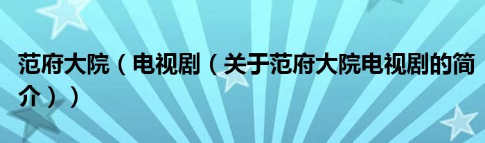 本文關于范府大院 電視劇的簡介就講解完畢,希望對大家有所幫助。