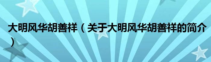 本文關于大明風華胡善祥的簡介就講解完畢,希望對大家有所幫助。