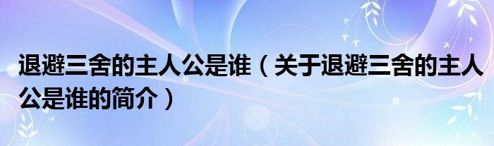 大家好,退避三舍的主人公是誰,關(guān)于退避三舍的主人公是誰的簡介很多人還不知道,現(xiàn)在讓我們一起來看看吧!
