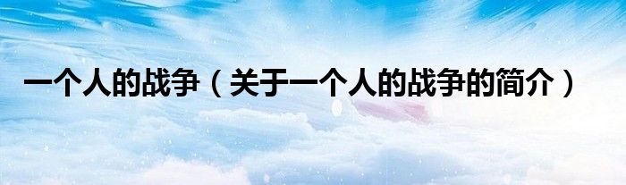 大家好,一個(gè)人的戰(zhàn)爭,關(guān)于一個(gè)人的戰(zhàn)爭的簡介很多人還不知道,現(xiàn)在讓我們一起來看看吧!