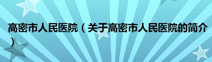 本文關于高密市人民醫院的簡介就講解完畢,希望對大家有所幫助。