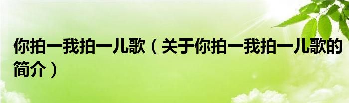 本文關于你拍一我拍一兒歌的簡介就講解完畢,希望對大家有所幫助。