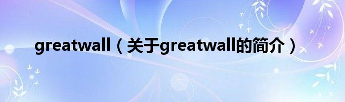 大家好,greatwall,關于greatwall的簡介很多人還不知道,現在讓我們一起來看看吧!