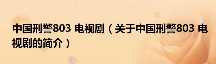 本文關(guān)于中國刑警803 電視劇的簡介就講解完畢,希望對大家有所幫助。