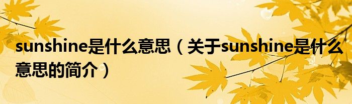 本文關于sunshine是什么意思的簡介就講解完畢,希望對大家有所幫助。