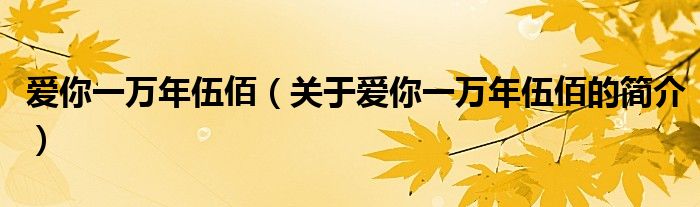 大家好,愛你一萬年伍佰,關于愛你一萬年伍佰的簡介很多人還不知道,現在讓我們一起來看看吧!