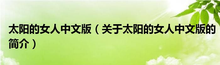 本文關于太陽的女人中文版的簡介就講解完畢,希望對大家有所幫助。