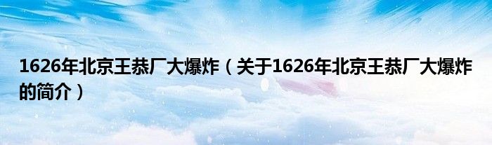 大家好,1626年北京王恭廠大爆炸,關(guān)于1626年北京王恭廠大爆炸的簡介很多人還不知道,現(xiàn)在讓我們一起來看看吧!