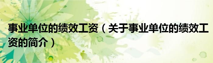 本文關于事業單位的績效工資的簡介就講解完畢,希望對大家有所幫助。