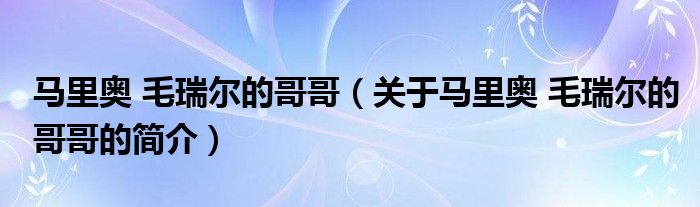 本文關于馬里奧 毛瑞爾的哥哥的簡介就講解完畢,希望對大家有所幫助。