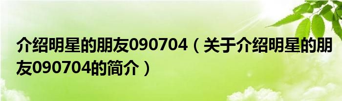 本文關于介紹明星的朋友090704的簡介就講解完畢,希望對大家有所幫助。