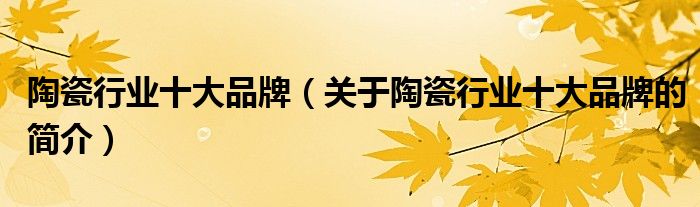 本文關于陶瓷行業十大品牌的簡介就講解完畢,希望對大家有所幫助。