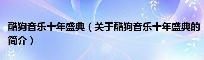 本文關于酷狗音樂十年盛典的簡介就講解完畢,希望對大家有所幫助。