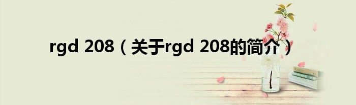 大家好,rgd 208,關于rgd 208的簡介很多人還不知道,現在讓我們一起來看看吧!