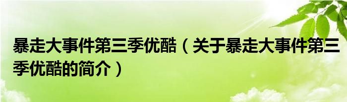 大家好,暴走大事件第三季優酷,關于暴走大事件第三季優酷的簡介很多人還不知道,現在讓我們一起來看看吧!
