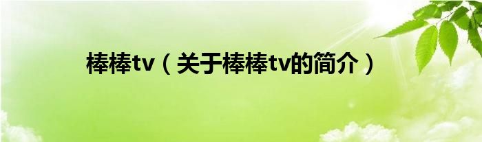 大家好,棒棒tv,關(guān)于棒棒tv的簡(jiǎn)介很多人還不知道,現(xiàn)在讓我們一起來(lái)看看吧!