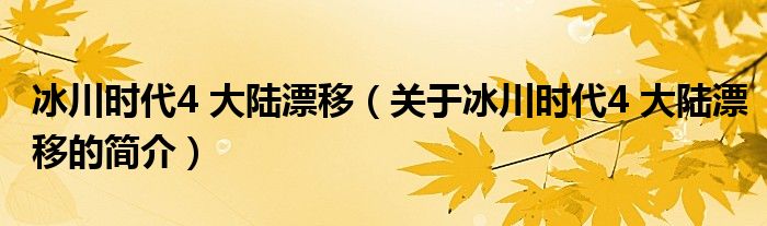 大家好,冰川時代4 大陸漂移,關于冰川時代4 大陸漂移的簡介很多人還不知道,現在讓我們一起來看看吧!