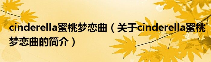本文關于cinderella蜜桃夢戀曲的簡介就講解完畢,希望對大家有所幫助。
