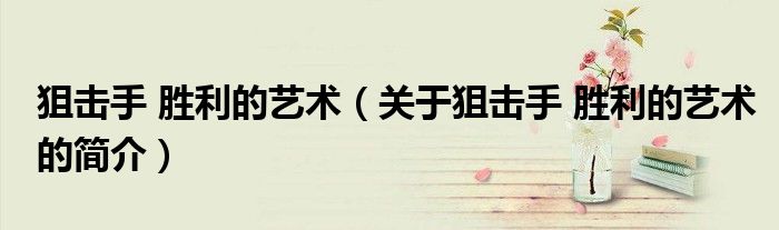 本文關于狙擊手 勝利的藝術的簡介就講解完畢,希望對大家有所幫助。