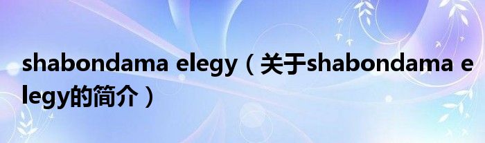 本文關于shabondama elegy的簡介就講解完畢,希望對大家有所幫助。