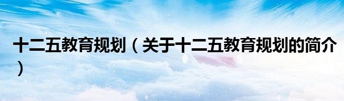 本文關于十二五教育規劃的簡介就講解完畢,希望對大家有所幫助。