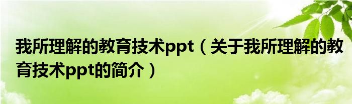 本文關(guān)于我所理解的教育技術(shù)ppt的簡介就講解完畢,希望對大家有所幫助。