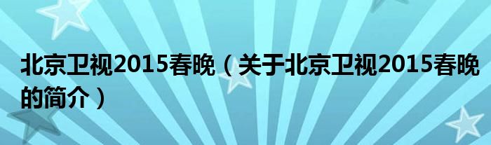 本文關(guān)于北京衛(wèi)視2015春晚的簡介就講解完畢,希望對大家有所幫助。