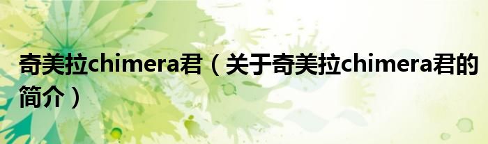 本文關于奇美拉chimera君的簡介就講解完畢,希望對大家有所幫助。