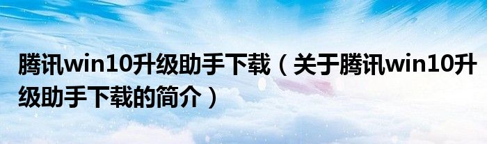本文關于騰訊win10升級助手下載的簡介就講解完畢,希望對大家有所幫助。