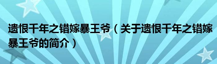 本文關(guān)于遺恨千年之錯(cuò)嫁暴王爺?shù)暮?jiǎn)介就講解完畢,希望對(duì)大家有所幫助。