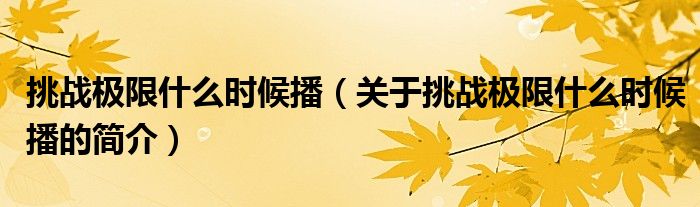 本文關(guān)于挑戰(zhàn)極限什么時候播的簡介就講解完畢,希望對大家有所幫助。