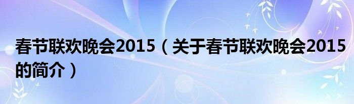 本文關于春節聯歡晚會2015的簡介就講解完畢,希望對大家有所幫助。