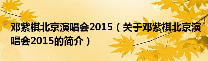 本文關(guān)于鄧紫棋北京演唱會2015的簡介就講解完畢,希望對大家有所幫助。
