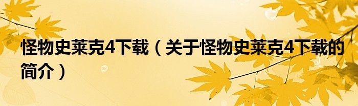 本文關(guān)于怪物史萊克4下載的簡介就講解完畢,希望對大家有所幫助。