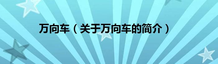 大家好,萬向車,關于萬向車的簡介很多人還不知道,現在讓我們一起來看看吧!