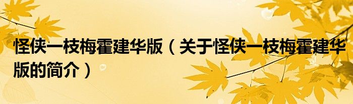 本文關(guān)于怪俠一枝梅霍建華版的簡(jiǎn)介就講解完畢,希望對(duì)大家有所幫助。