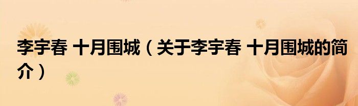 本文關于李宇春 十月圍城的簡介就講解完畢,希望對大家有所幫助。