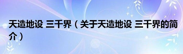 本文關于天造地設 三千界的簡介就講解完畢,希望對大家有所幫助。