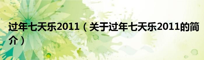 本文關(guān)于過年七天樂2011的簡介就講解完畢,希望對大家有所幫助。