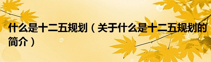 本文關于什么是十二五規(guī)劃的簡介就講解完畢,希望對大家有所幫助。