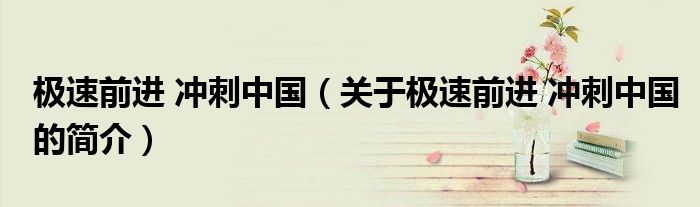 本文關于極速前進 沖刺中國的簡介就講解完畢,希望對大家有所幫助。